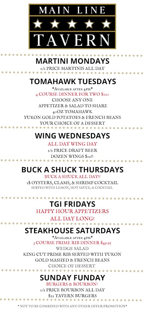 *Happy Hour is NOT available on major holidays, and coupons or discounts cannot be combined with Happy Hour pricing*